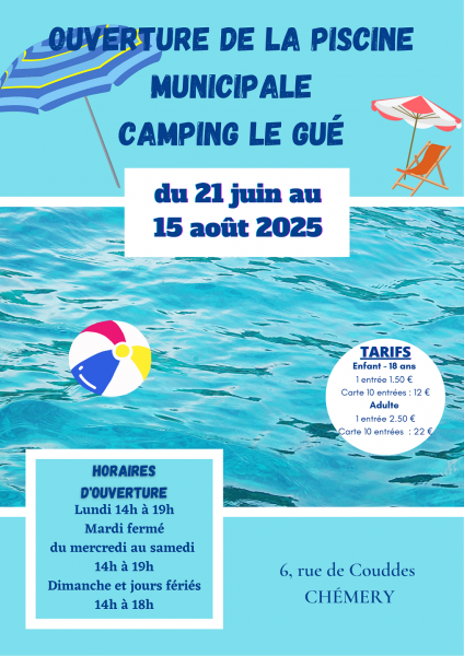 Ouverture de la piscine du 21 juin au 15 août 2025